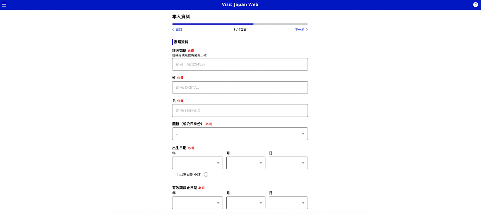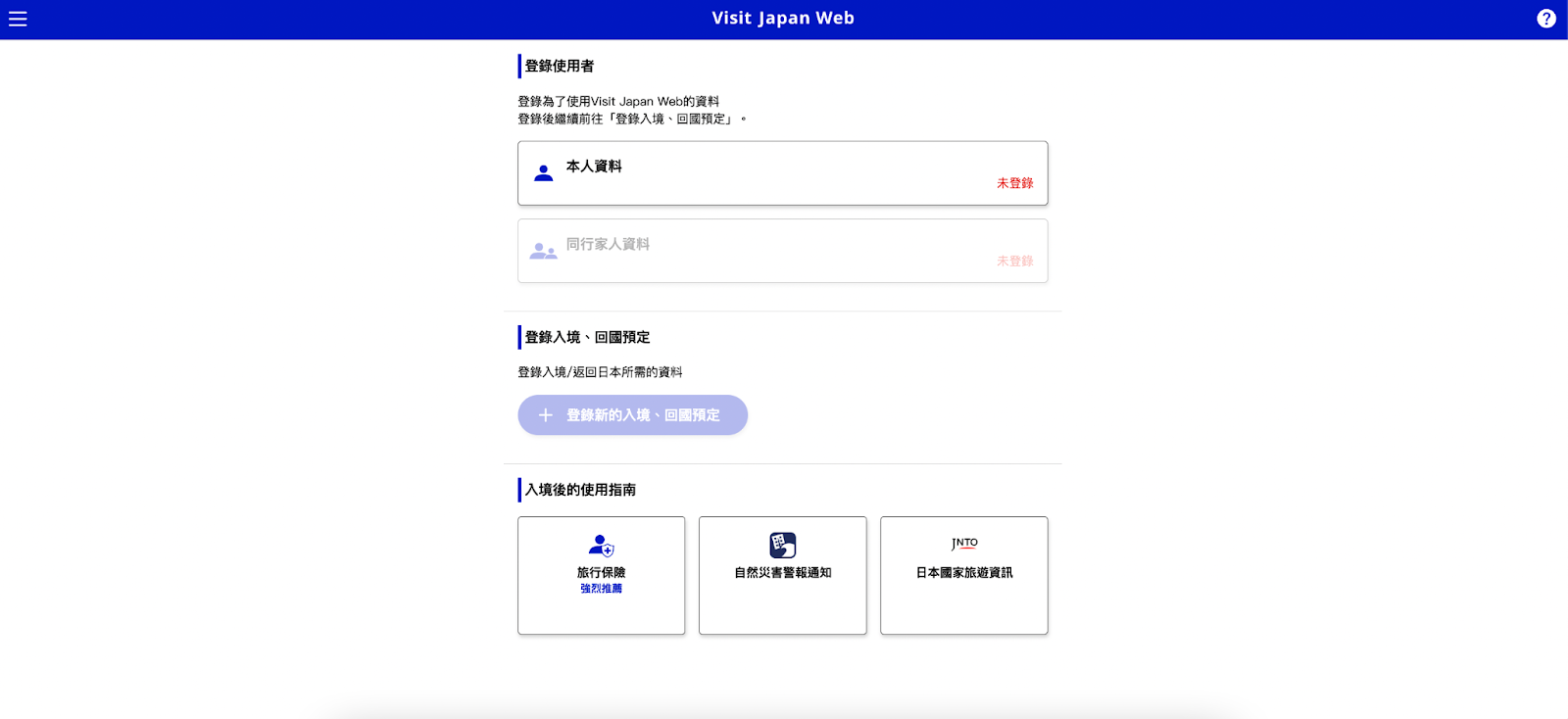 填寫 Visit Japan Web 個人資料