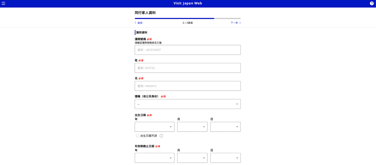 Visit Japan Web 同行家人、小孩怎麼填?